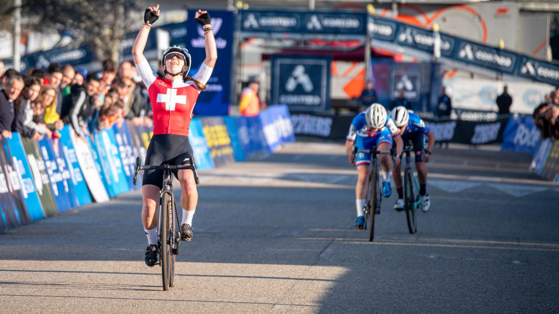Anja Grossmann hat an den Radquer-Europameisterschaften in Pontevedra aus Schweizer Sicht das Ausrufezeichen gesetzt. Die 16-jährige Luzernerin, im vergangenen Sommer auf dem Mountainbike U17-Europameisterin geworden, setzte sich auf dem ebenso attraktiven wie schnellen Kurs an der spanischen Westküste in der U19-Kategorie souverän durch. Kurz vor dem Ziel vermochte sie ihre stärksten Konkurrentinnen Barbora Bukovska aus Tschechien und Giorgia Pellizotti aus Italien leicht, aber entscheidend zu distanzieren. Grossmann sei taktisch clever gefahren und physisch „vermutlich die Stärkste“ gewesen, liess Nationaltrainer Andreas Kugler verlauten. „Sie hat die Konkurrenz stets am richtigen Ort unter Druck gesetzt und sich in jenen Passagen etwas erholt, in denen das ohne Zeitverlust möglich war.“
