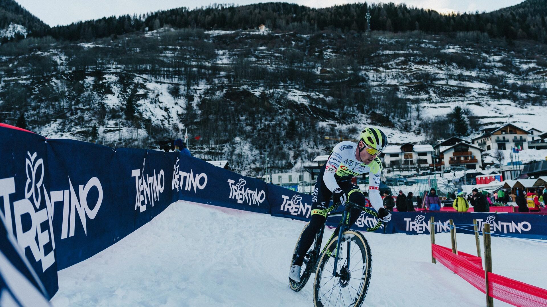 Gastiert der Radquer-Weltcup in Val di Sole, ist die Wahrscheinlichkeit einer weissen Unterlage hoch. Vor Jahresfrist brillierten Kevin Kuhn und Timon Rüegg im Trentino auf pickelhartem Schnee; die beiden Schweizer reihten sich auf den Plätzen 3 und 5 ein. Zu wiederholen vermochten der Zürcher Oberländer Kuhn und der Züricher Unterländer Rüegg den Coup nicht. Aber sie präsentierten sich auf dem diesmal weicheren und tieferen Schnee wiederum in guter Verfassung; es resultierten die Ränge 7 und 8.