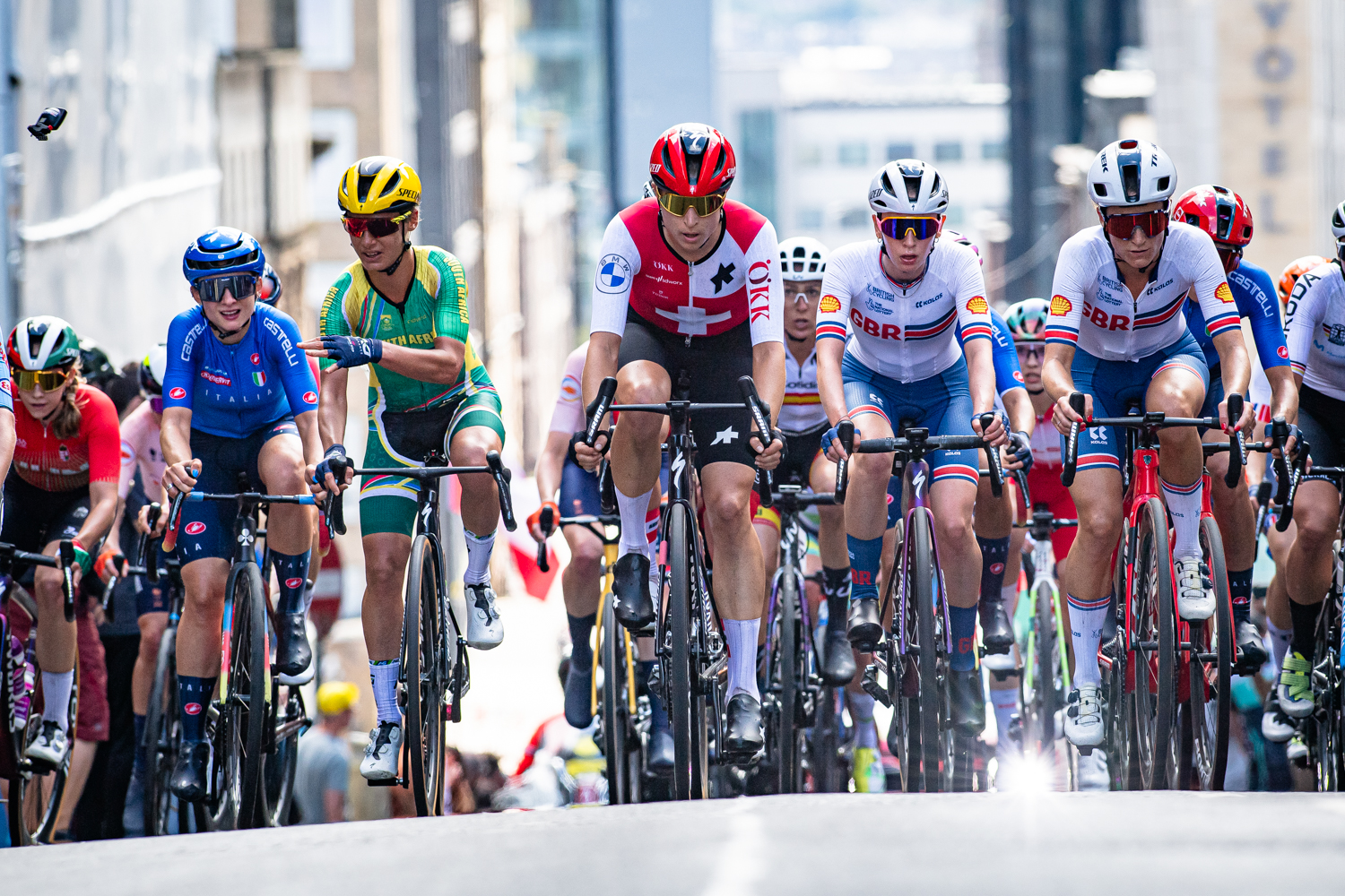 Marlen Reusser dans le centre-ville de Glasgow pendant les Championnats du monde 2023 Image: Arne Mill